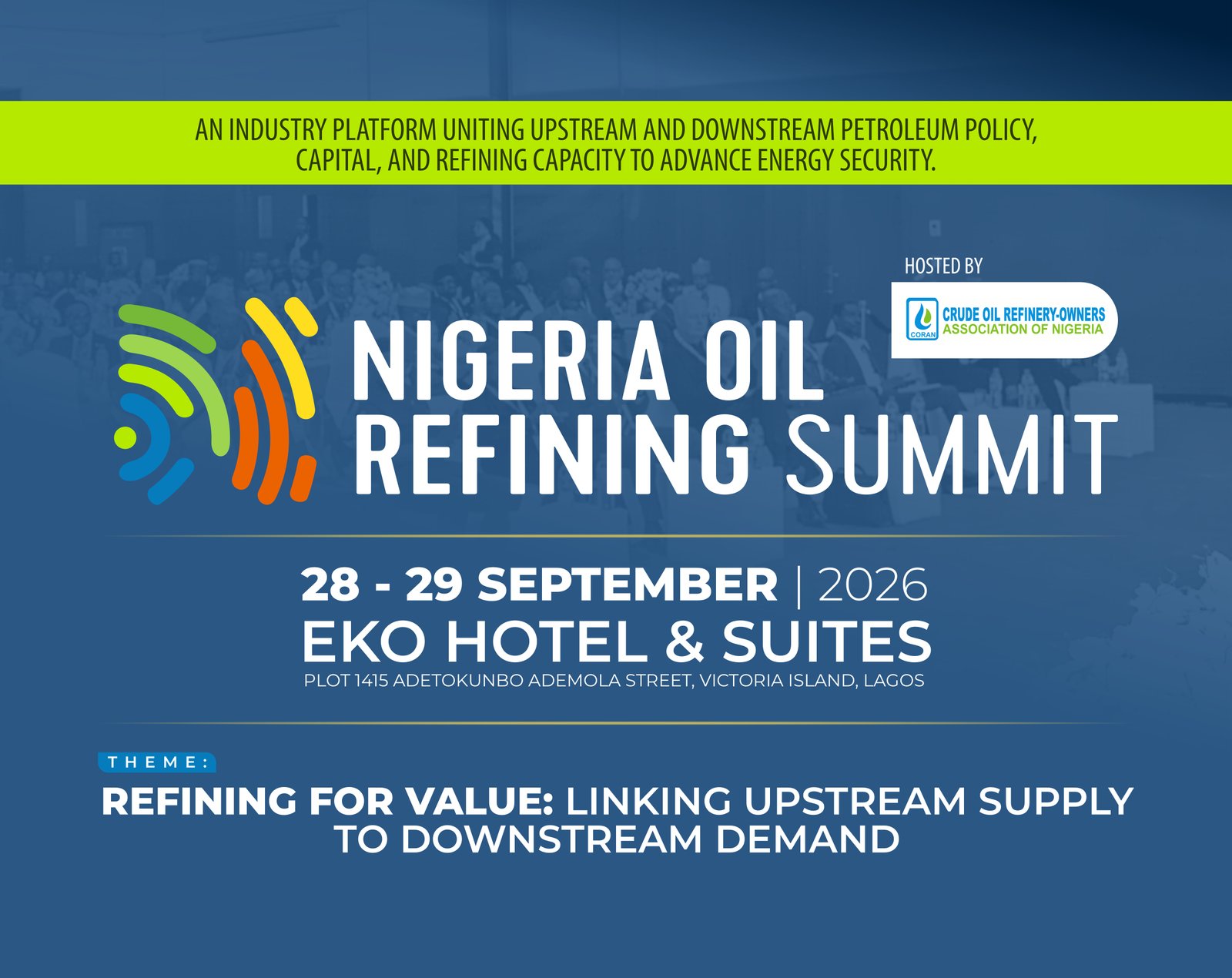 Hosted by the Crude Oil Refinery-Owners Association of Nigeria (CORAN), this landmark summit convenes the global downstream, midstream and upstream petroleum sectors, alongside policy makers, regulators, investors, financiers, and industry leaders. Expect high-level strategic roundtables, powerful keynotes, and transformative dialogue focused on strengthening refining as the backbone of Africa’s energy security and economic growth.